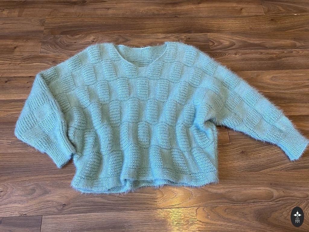Džempers ar sikspārņa piedurknēm.