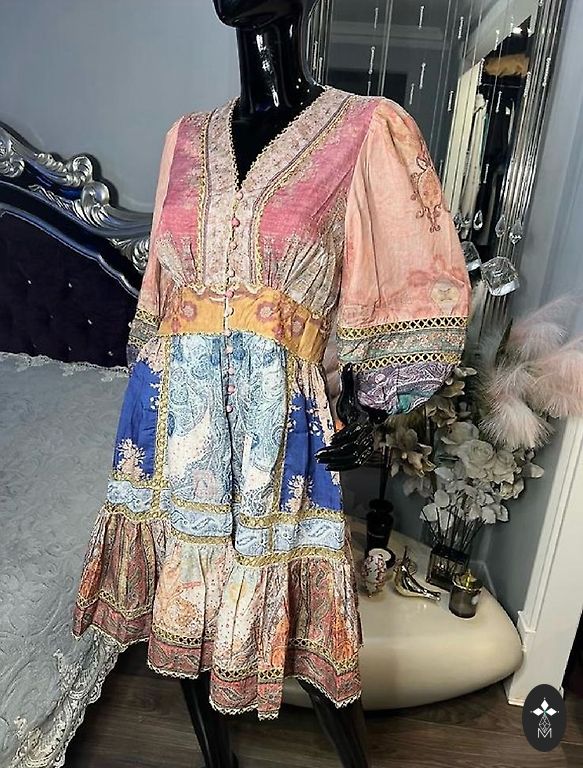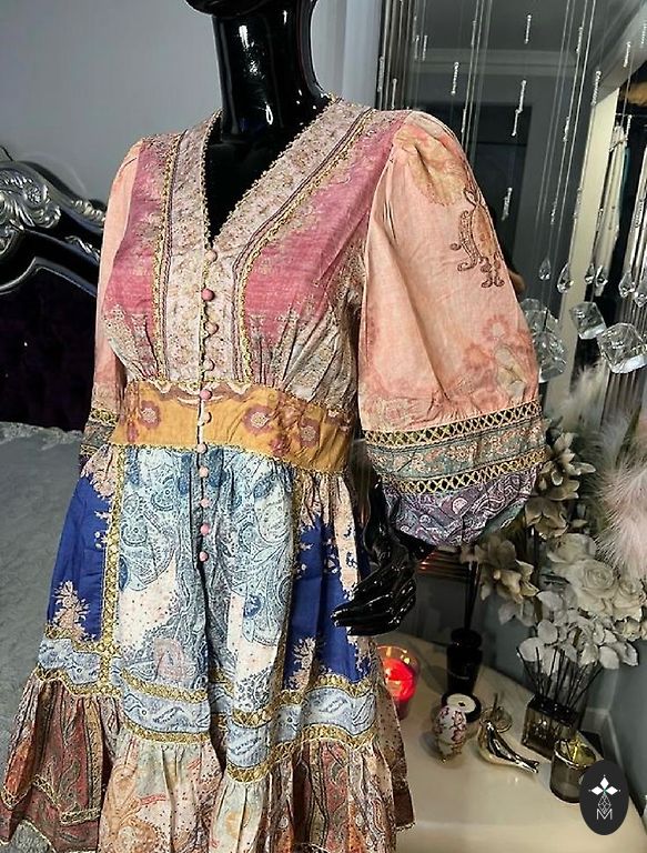 Müüa uus, kandmata kleit, mille ülemine osa on flanelli tüüpi puuvill, pikkade varrukate otstes juures augud pöialtele, veidi kõrgendatud vöökoht, seeliku osal on vooder, üks seeliku külg tõmmatud dekoratiivseks rosetiks, kuid kui on soov ühtlase pikkuse järele, on see kergesti lahtiharutatav. Seeliku materjal dekoratiivselt kortsutatud, ei vaja triikimist. Tagaosa tõmblukk. Rinnaümbermõõt - 88 cm, kleidi pikkus õlalaiusest kuni alumise osani - 140 cm. Müüme poole hinnaga. Ei saa kehal pildistada, kuna kahjuks ei sobi mulle.