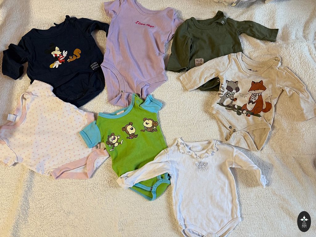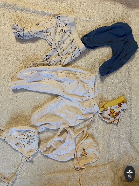 Боди единственный был надет три раза, остальные новые, только постиранные. Одежду купили новую в магазине Nordbaby. Кофта с капюшоном довольно теплая и толстая.