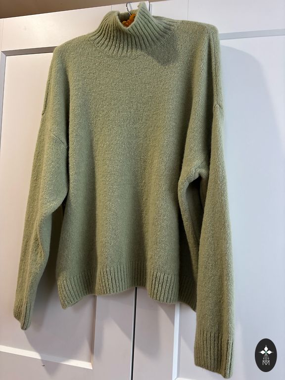 Visiškai naujas megztinis, šiltas ir minkštas, supratau, kad ne man. Dydis yra L, bet sakyčiau, kad labiau S-M. Be pečių megztinis. Nenešiotas. Parašyk, jei nori. #megztinis#adytasmegztinis