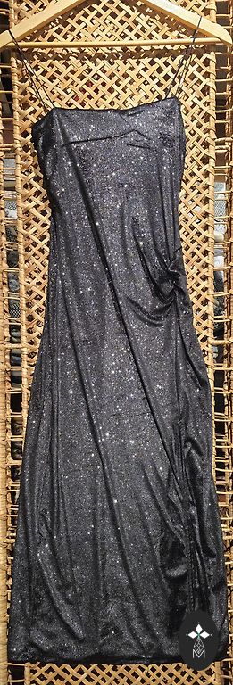 EUR 36 izmēra kleta ar divu izmēru garumu. Aizmugure gara, priekšā īsa nedaudz virs ceļiem. Dubultais audums- apakšā dzeltens atlass, virsū dekoratīvs audums ar ziediem. Aizmugurē lielāks izgriezums ar rāvējslēdža aizdari.