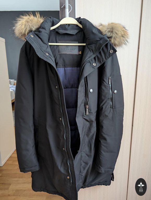 Vīriešu mētelis,labā stāvoklī, aizdare gan ar rāvējslēdzēju, gan papildus pogas. Krāsa nav īsti melna, bet vairāk kā grafīta .