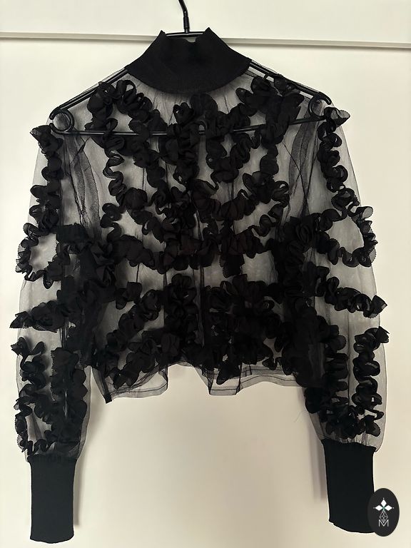Kaip nauja, užsidėjau tik vieną kartą renginyje. Maloni medžiaga su gražiu užsegimo elementu nugaroje. Priekio ilgis 68 cm, nugaros ilgis 73 cm, plotis po pažastimis 48 cm, rankovės ilgis 50,5 cm.