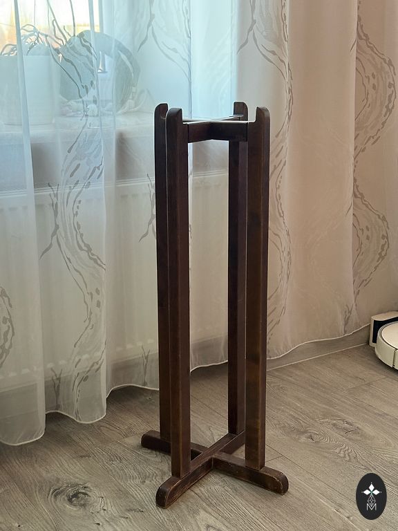 Tiek tirgotas gatavas koka kāpnes ar 90 grādu pagriezienu pa labi bez margām. Sastāv no 3 pagrieziena pakāpieniem un 13 taisniem pakāpieniem. Pašizvešana