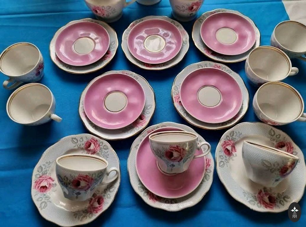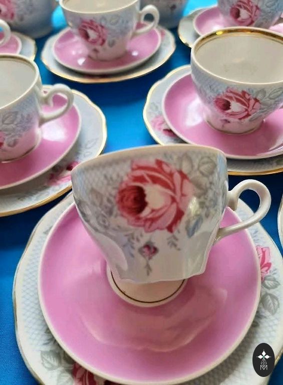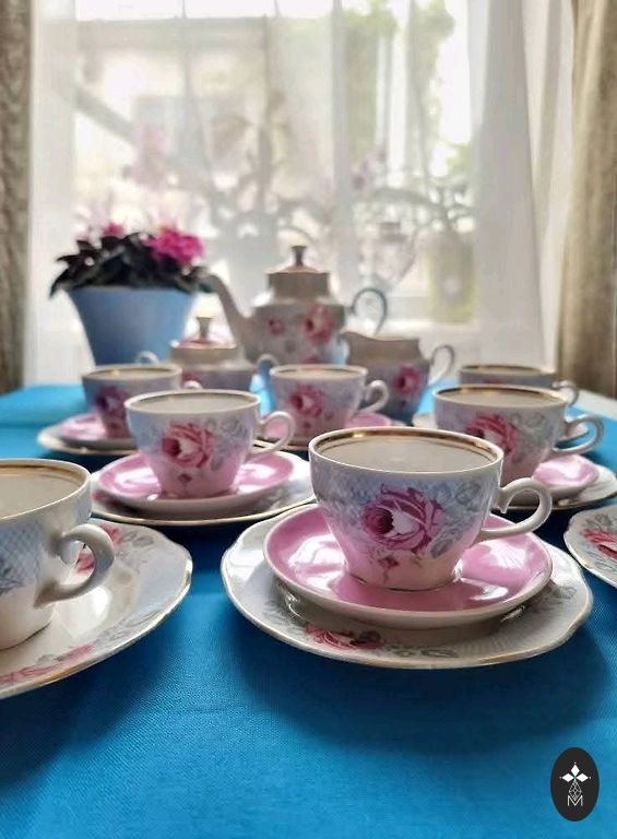 Rpr kafijas servīze Viktorija ar pīlādžu. Krūzītēm un apakštasītēm r pāris robiņi.