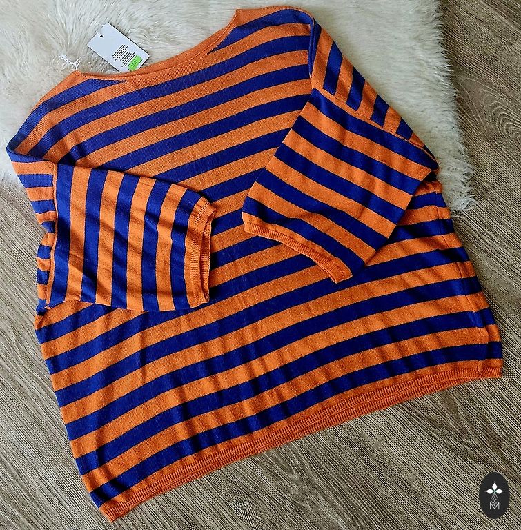 M izmērs. Platums nestiepjot 90cm, garums 62cm. Ļoti mīksta, elastīga un viegla. Lielisks sastāvs, kas nesaveļas: 80% viskoze un 20% neilons. Skaists zilais tonis. Pirkta Anglijā. Sūtu 💙