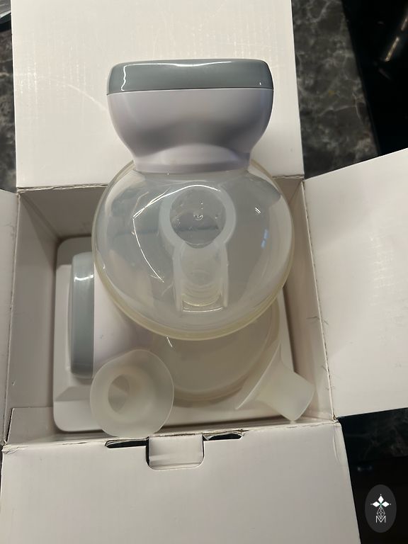 Мало использованный молокоотсос. 24 мм. Бутылочку в комплекте можно заменить на бутылочки Philips Avent (о других фирмах не могу сказать).