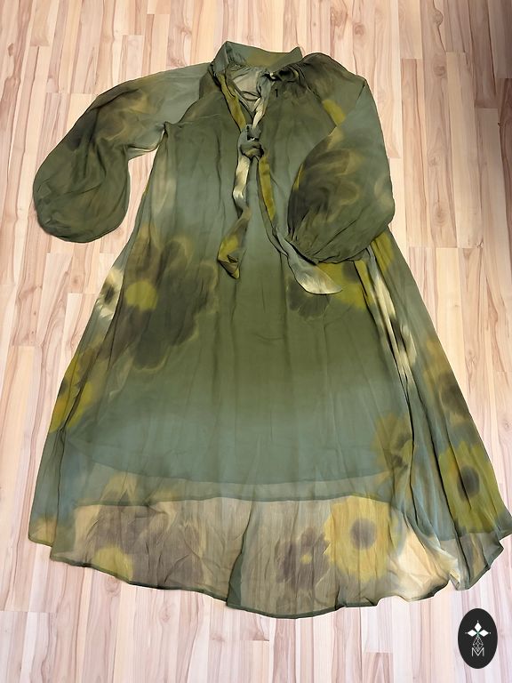 I am selling a light fabric long dress in blue with long sleeves, a V-neckline and embroidered flower motifs, made using the cut-out ruffle technique. The dress is ideal for women who are 170 cm+ tall, for everyday wear, going out, and various events. The fabric is light but not see-through. The dress is 135 cm long, 66 cm x 2 at the bust, 65 cm at the sleeves, and 13 cm at the shoulders. I will send it via Omniva parcel service throughout Latvia according to Andele's price list, with shipping costs covered by the buyer. I do not meet in person.