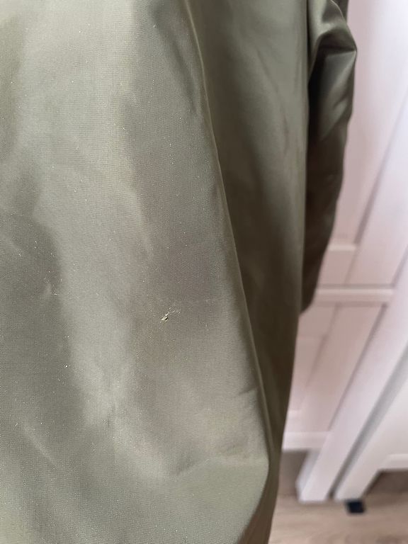 Идеально подойдет для нашей весны, легкая, удобная, задерживает ветер. На ярлыке указано 128, но лучше будет на 122. Местами есть потертости на ткани, но незаметно. В целом хорошее состояние. На фото цвет получается светлее, в жизни ярко черный.
