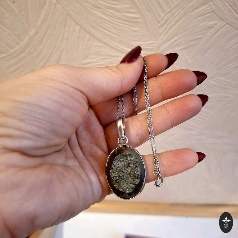 Kummist kett hõbedase metalliga ja "yin ja yang" tüüpi ripats.