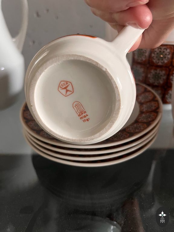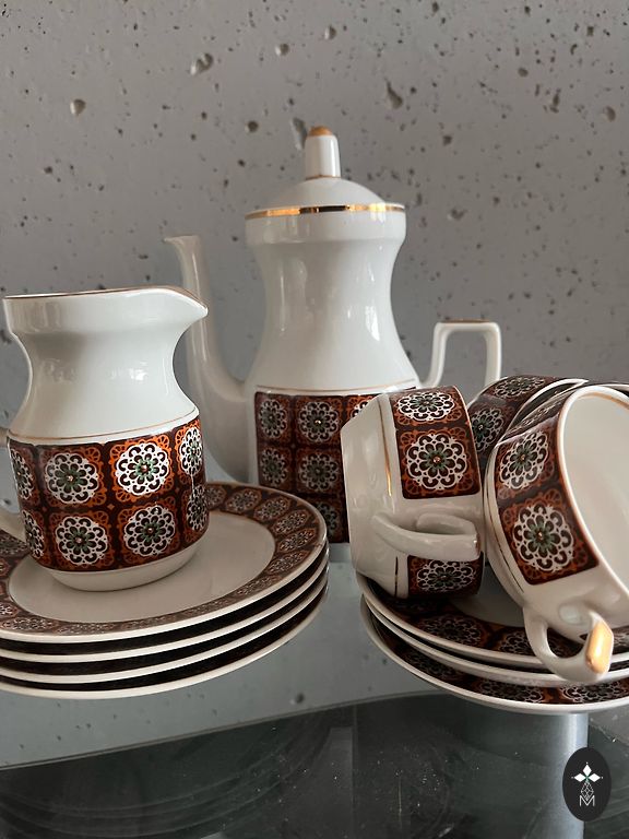 Be defektų, 1 puodelis yra min. atsitrenkimas, trūksta lėkščių.