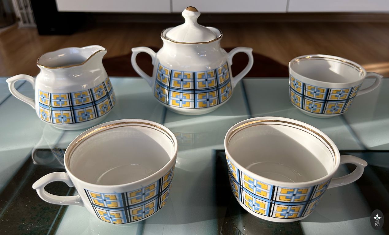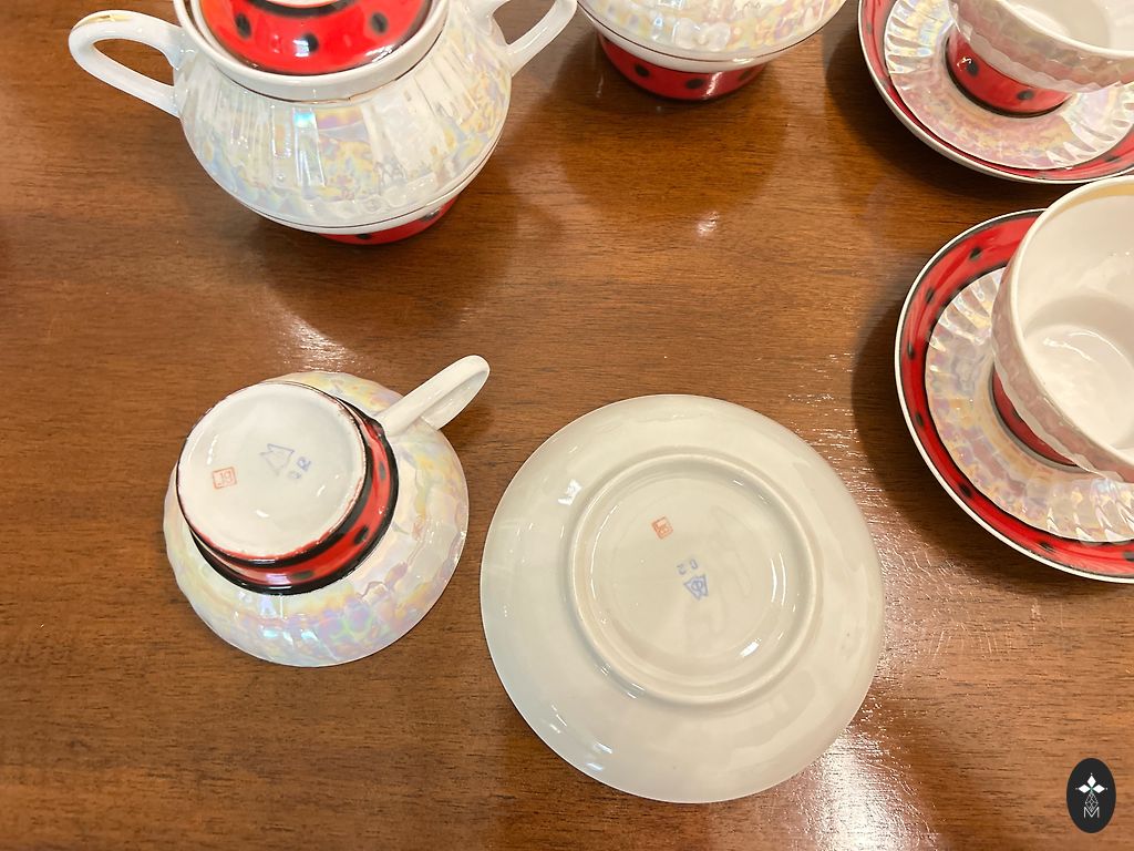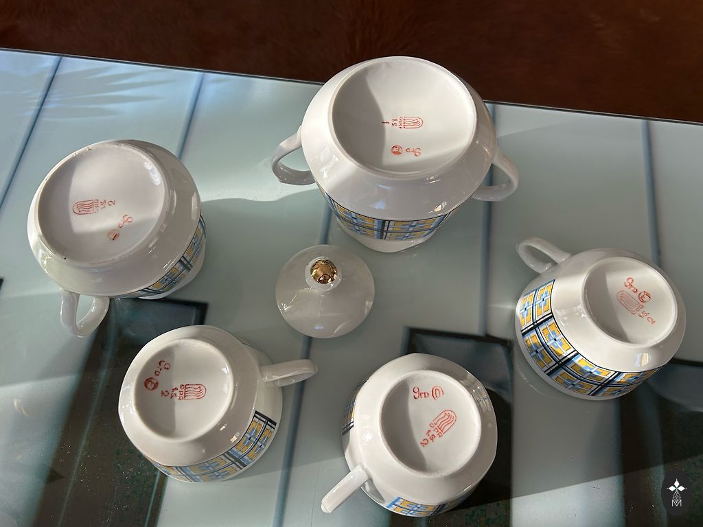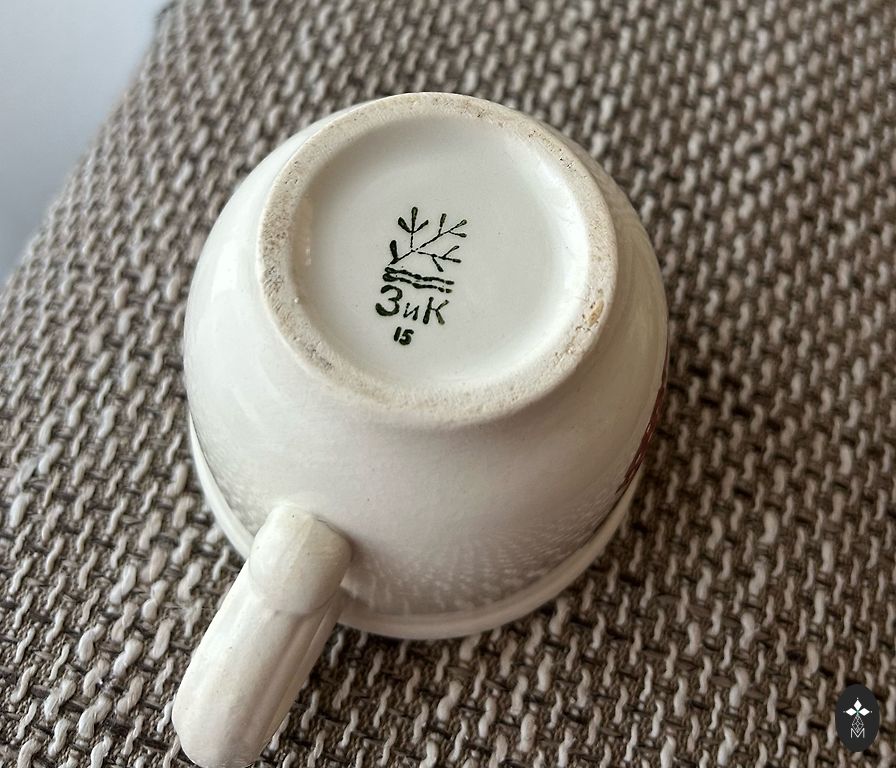 Four cups with good gold, look unused, except for the fifth with a different stamp. But!!! All of them have imperfections on the edges from improper storage, one has a smooth chip on the outside on the sunflower. Overall, not noticeable, not sharp. Price for all.