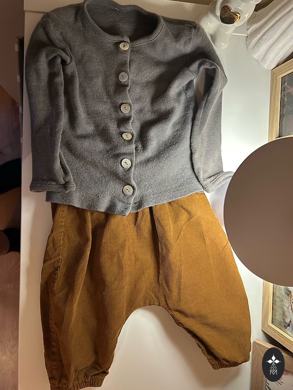 C&A flīsa jaciņa un bikses ar siltinājumu. Izmērs līdz 86 cm, 12-18 M. Jaciņas garums 35 cm, piedurknes - 30 cm, bikses 43 cm gari.