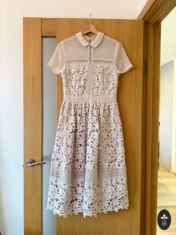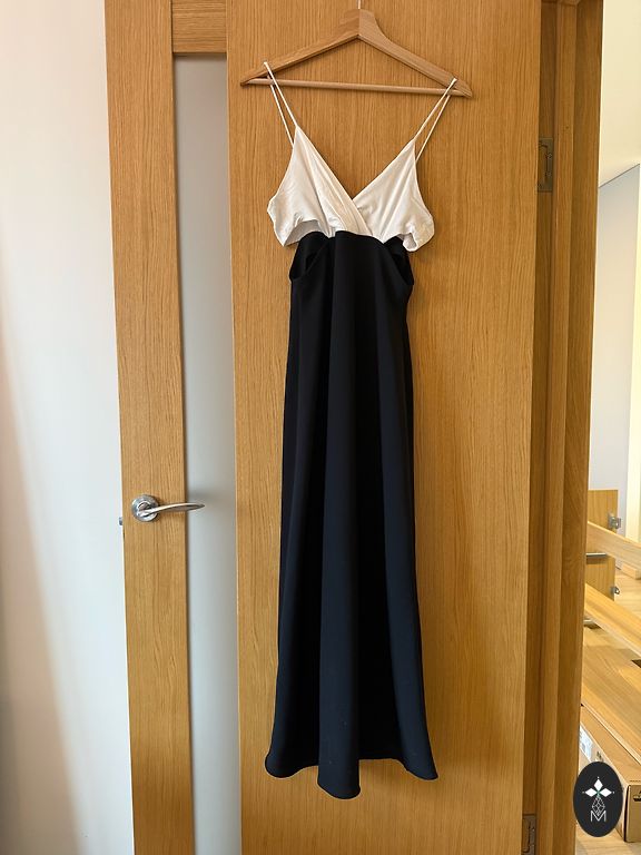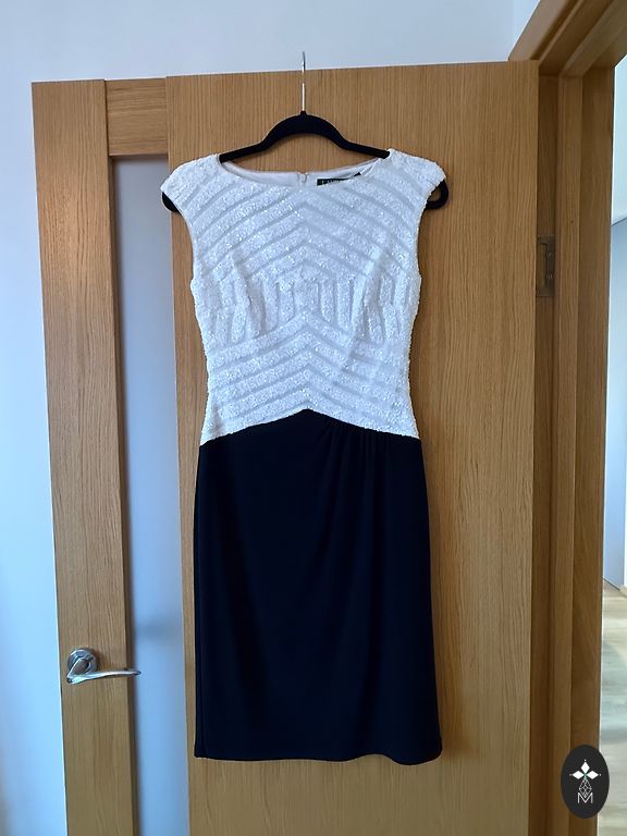 Beež, musta sileda kangast kevadkleit. Pikkus 98 cm. Küljel väikesed lõhikud. Rinnaümbermõõt 118 cm. Elastne ja mugav.