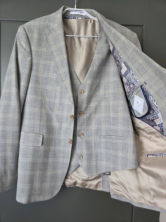 Parduodu vyro kostiumą, kuris buvo dėvėtas tik vieną kartą savo vestuvių dieną. Po vestuvių buvo nuneštas į cheminę valyklą. Stovi spintoje švarus ir be defektų ar naudojimo ženklų. Kaip naujas. Dėl išsamesnės informacijos ir nuotraukų kreipkitės privačiai. Iš anksto susitarus, yra galimybė pasimatuoti ir vietoje.