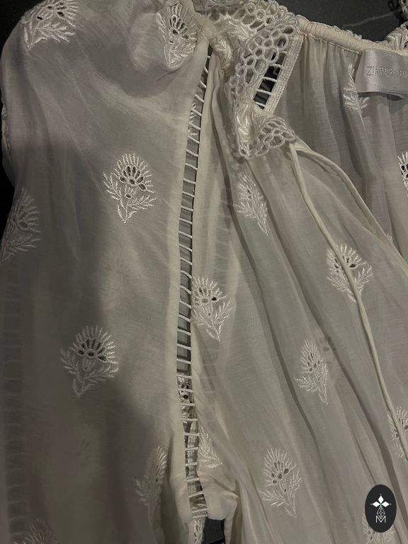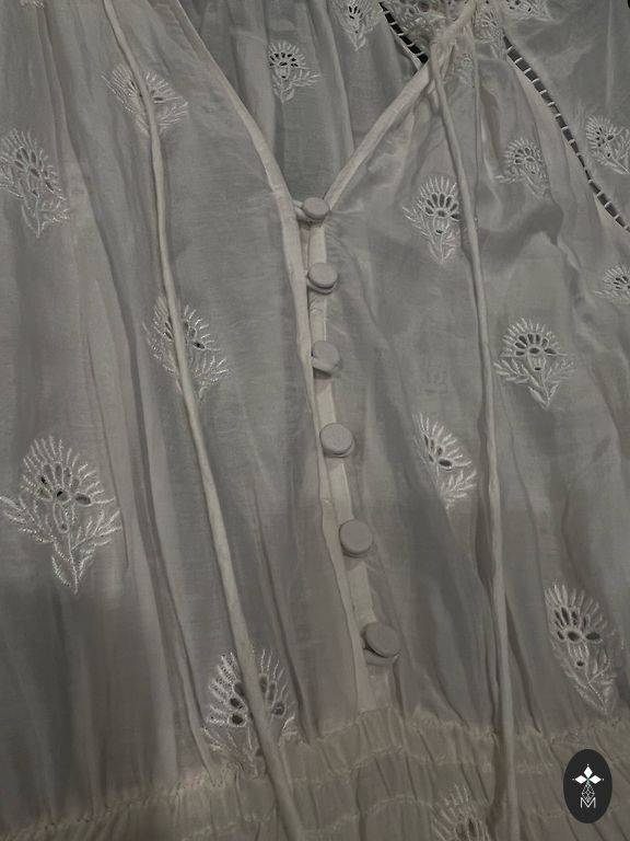 Элегантное белое платье с легким, прозрачным верхним слоем из тюля с точечным рисунком.