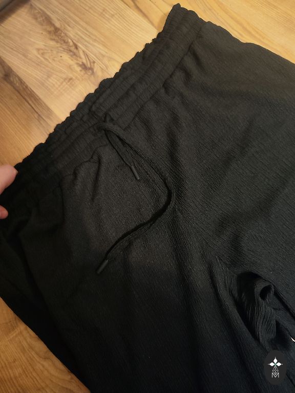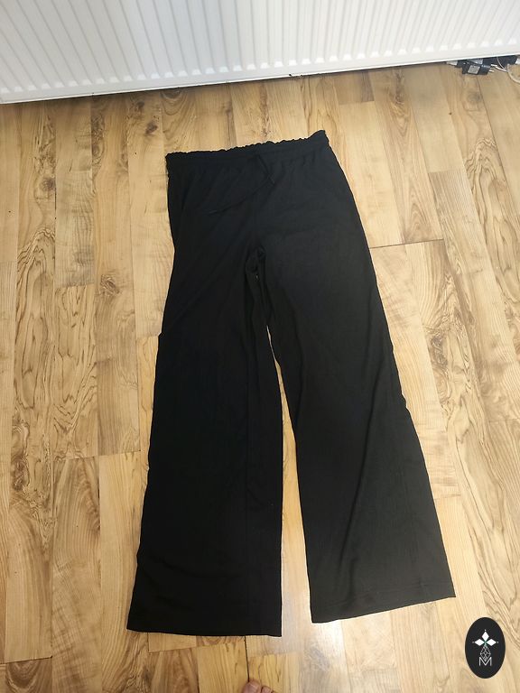 Wide pants with elastane, manufacturer indicated size 50/52. Length 115 cm, waist 48 x 2 cm without stretching, stretching max 75 x 2 cm, leg width 39 x 2 cm.
