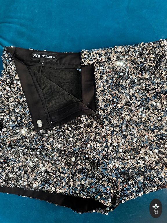 Sijono dalis yra lengvai suraukta ir papildyta paprastomis raukinio detalėmis. Suknelė yra neįprasto metalizuoto rašto – labai ypatinga • Užsegimas užtrauktuku nugaroje • Ilgos rankovės • Mini ilgis • Pagaminta iš perdirbtų medžiagų • Su pamušalu