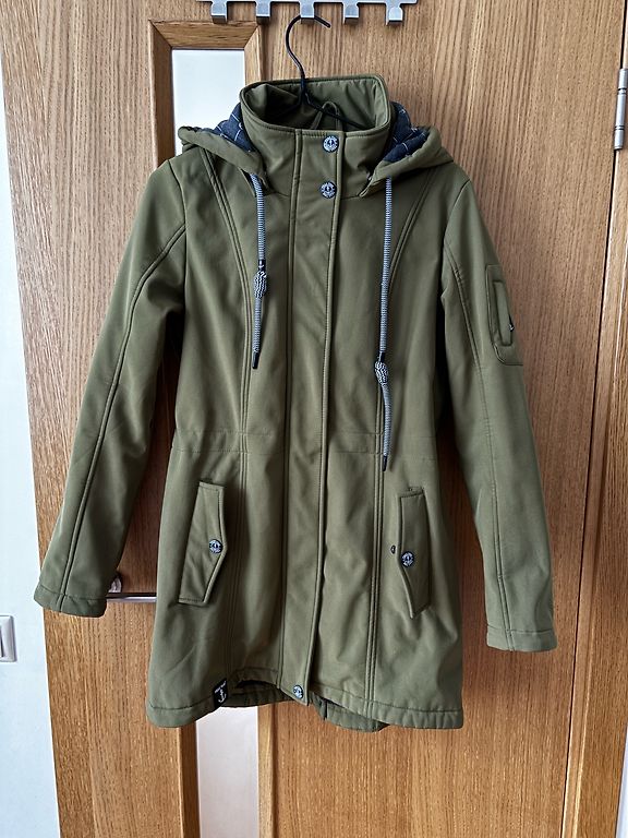 Minkštas, plonas paltas be pamušalo. Ilgis 97 cm, rankovių ilgis 62 cm, krūtinė 57 cm (114 cm).