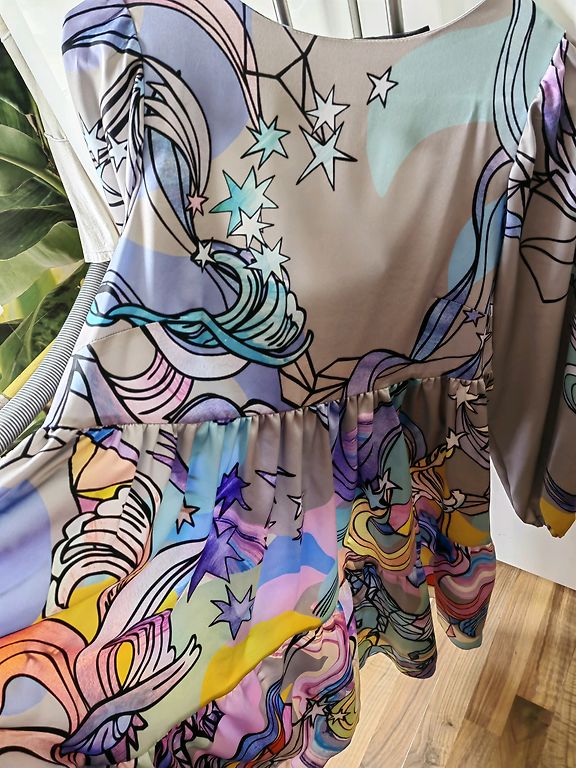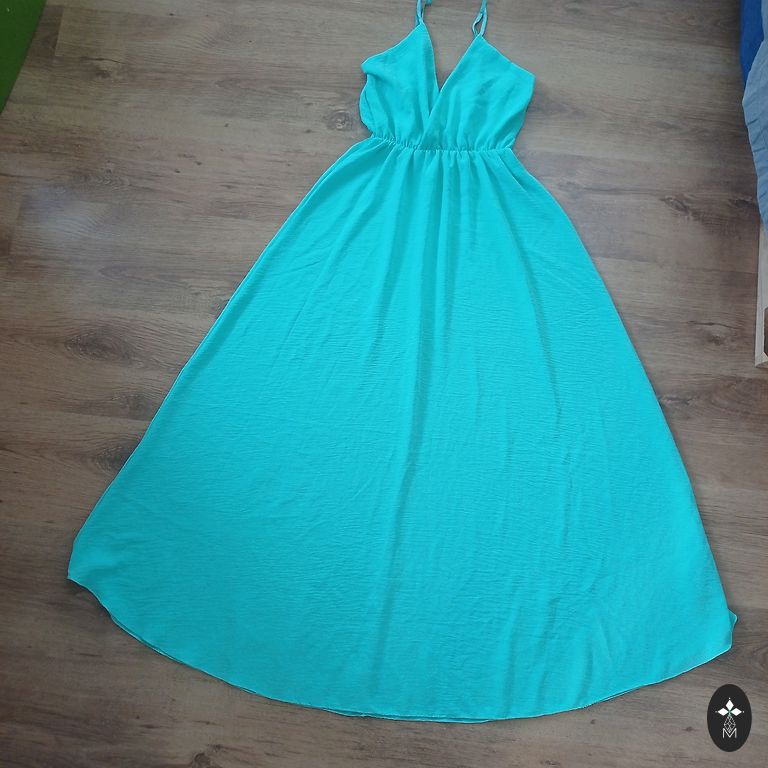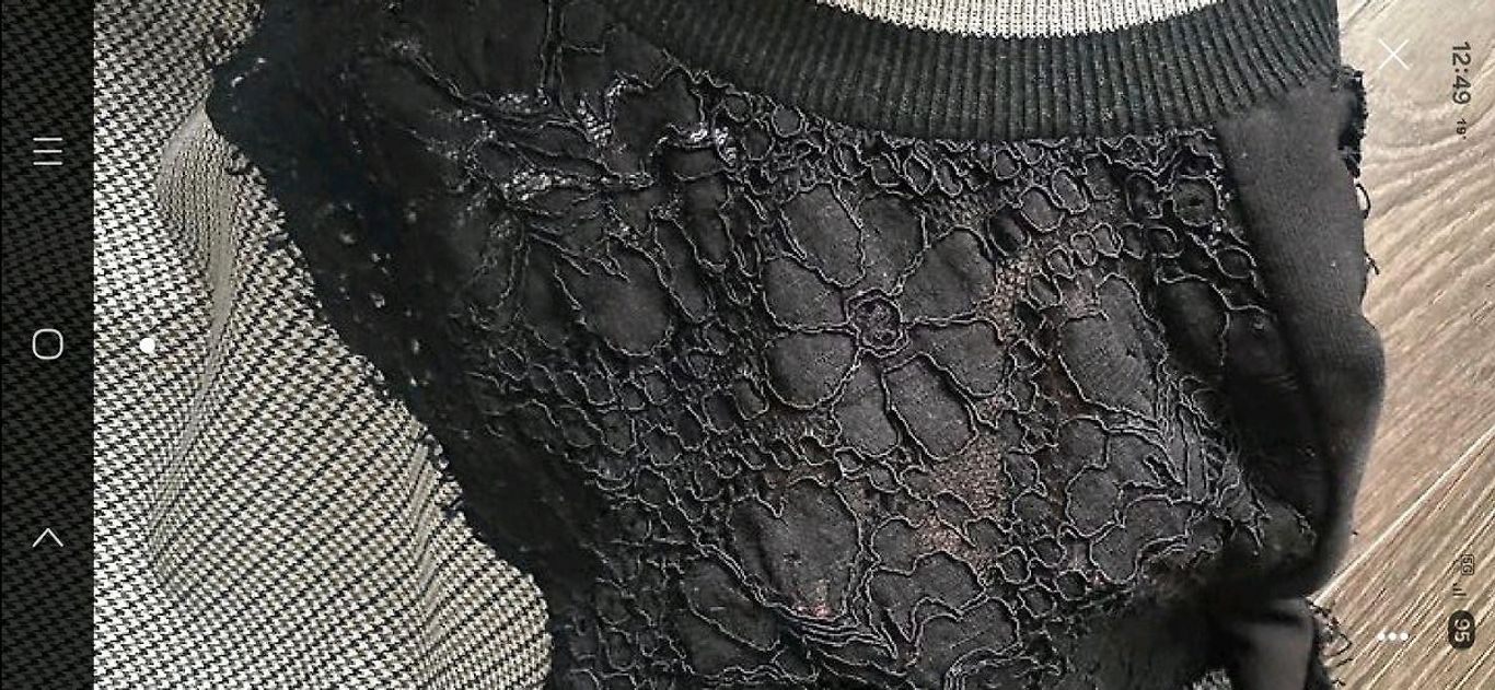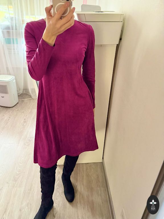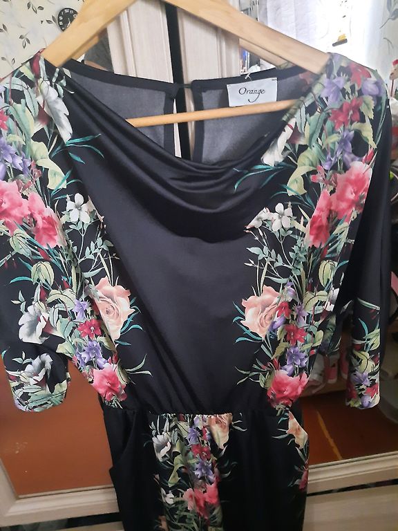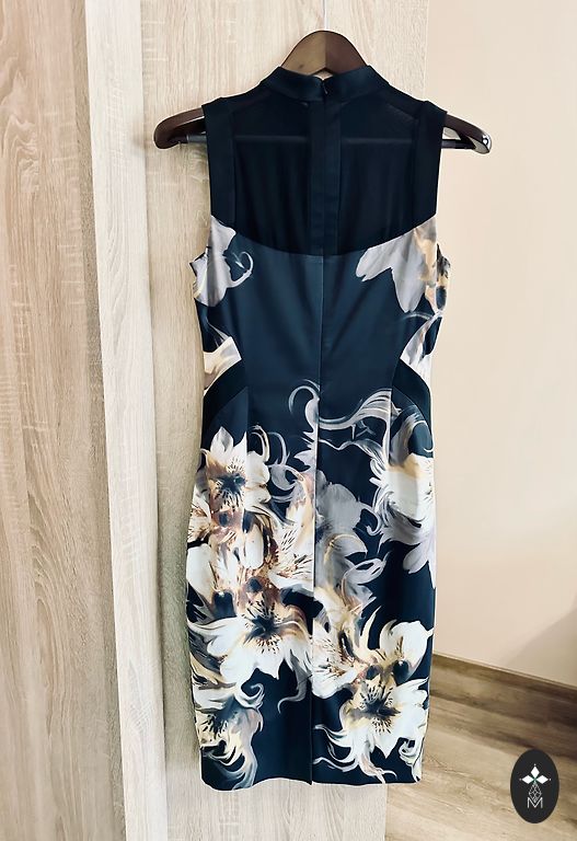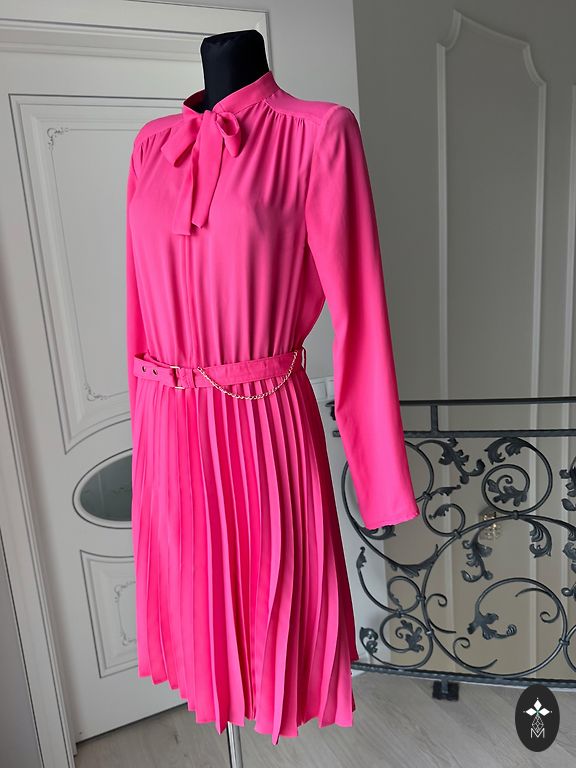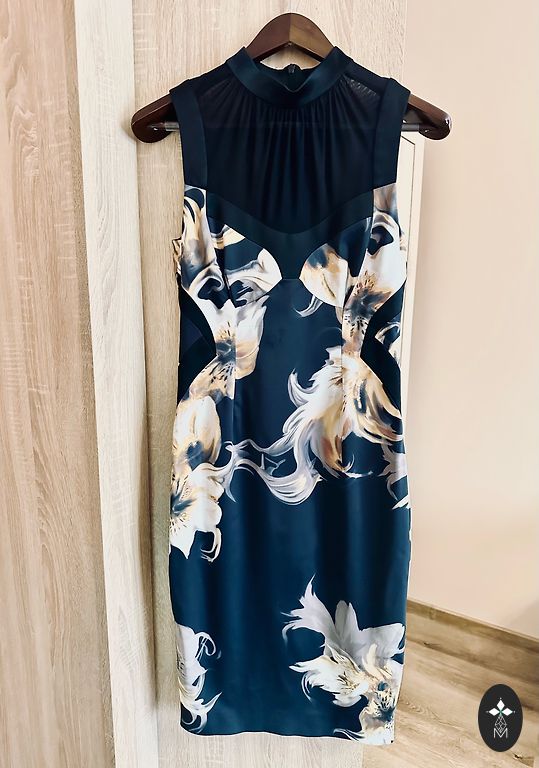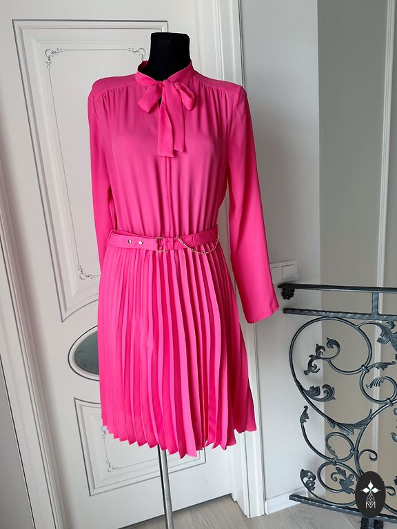 Suknelė 48 dydžio su tvirtu elastingu pamušalu, tampri. Buvo uždėta vieną kartą. Rankovės tiesiai po alkūne. Iškirpime ir rankovėse kaip mezgimas (matoma nuotraukoje). Stabilus 48 dydis. Tiks krūtinei iki 120 cm ir klubams iki 130-135 cm.