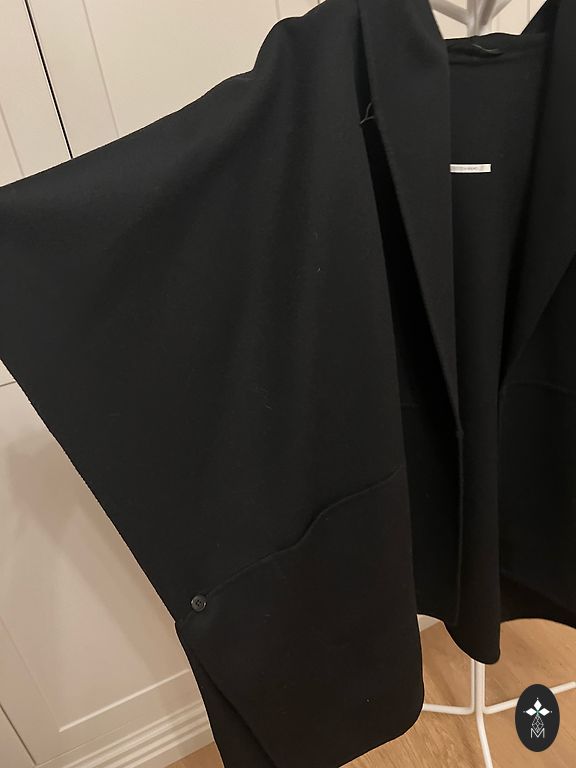 Auduma sastāvā 65% vilna. Garums 106cm, pleci 42 cm, jostasvietā max līdz 96 cm, piedurknes garums 60 cm.