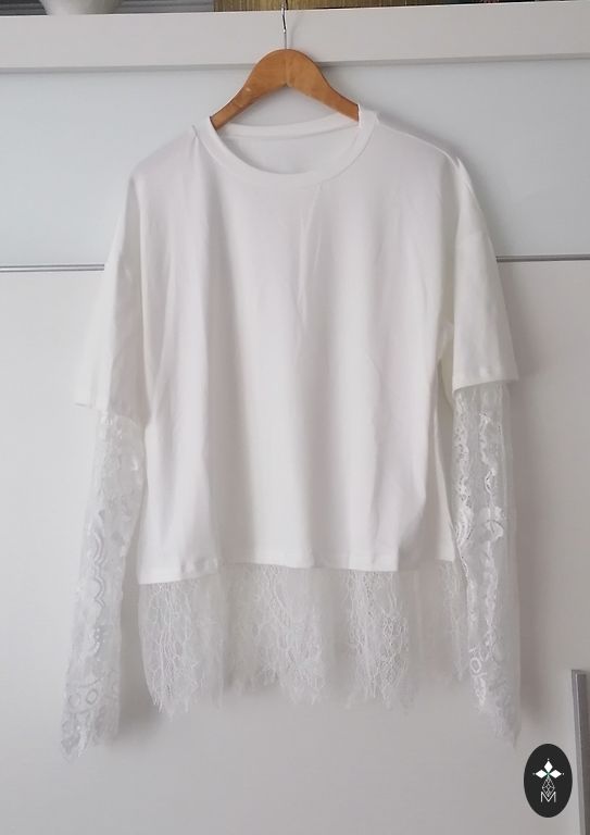 It never saw the light of day. Part of the lace. Bust 57 cm x 2; length 67 cm.