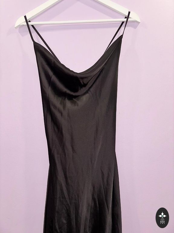 Kleidi suurus 44 Kleidi pikkus 143 cm Rind 50 cm x 2 Puusad 56 cm x 2 Talje 52 cm x 2 Lõige 48 cm Polüester 97%, elastaan 3%