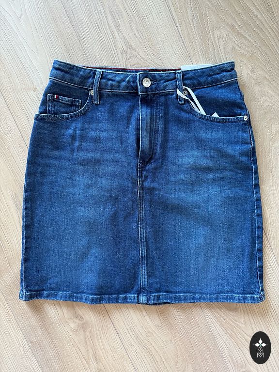 Džinsa mini svārki. Vidēji biezs audums, nav elastīgs.