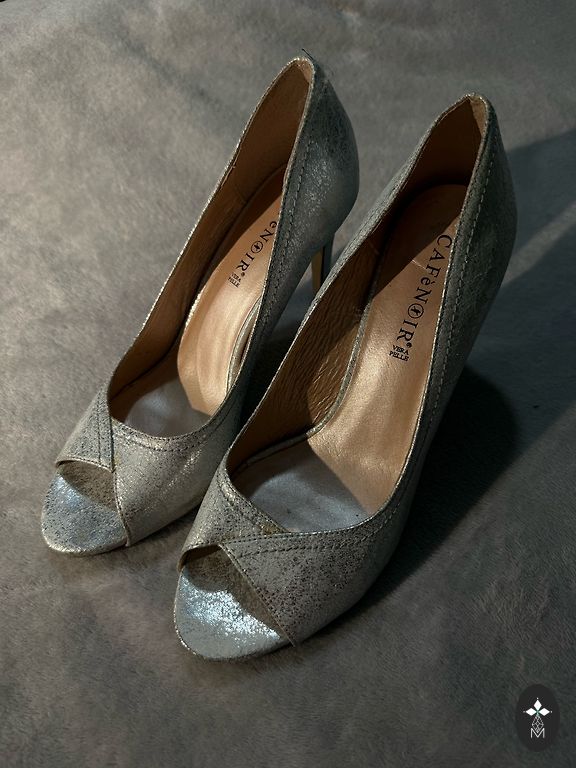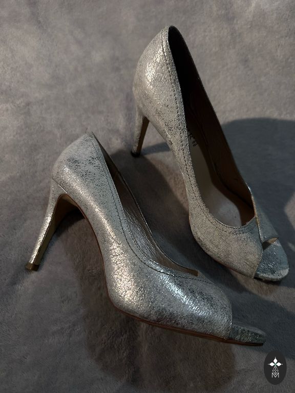Мягкие, удобные, легкие кожаные туфли для летних вечеринок. Серебристо-серого цвета, который подойдет к многим нарядам.