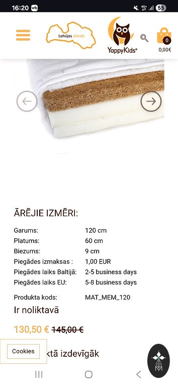 Matrača izmēri Garums: 89 cm | Platums: 40 cm |