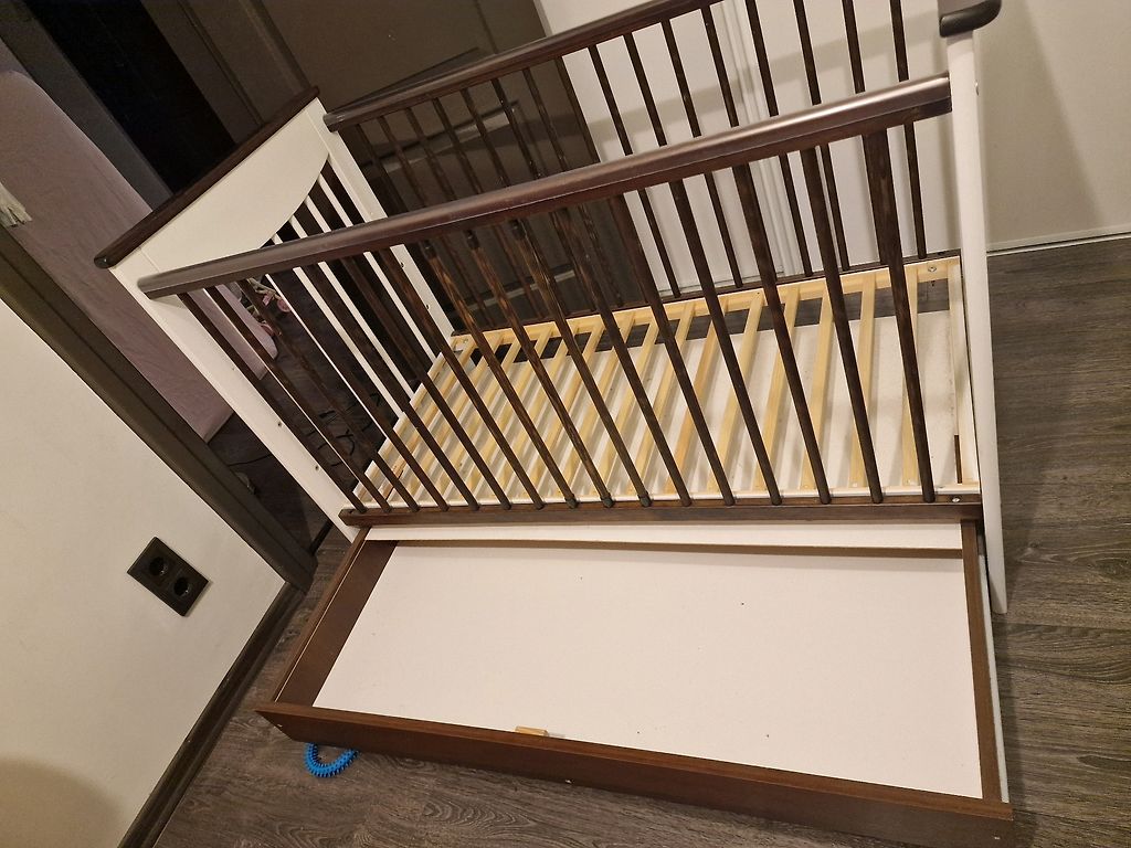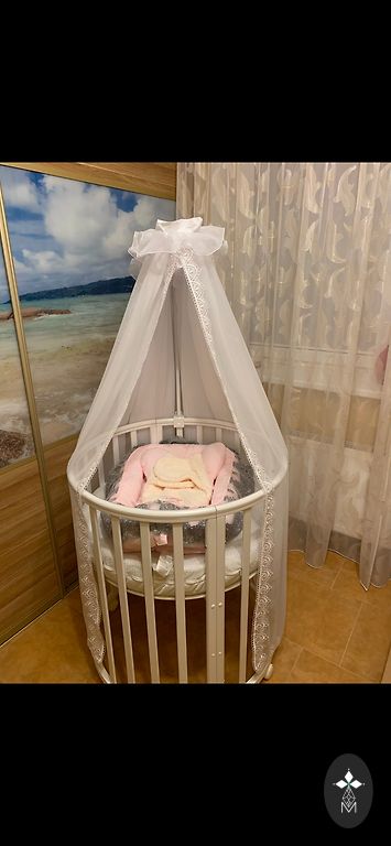 Pilnībā jauns, izpakots, bet nav izmantots, mazulis gulēja citā šūpulītī un ratos.