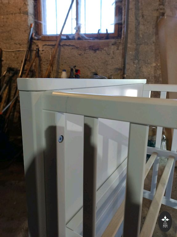 Vienā īsajā pusē ir marķējums, kas parāda maksimālo pieļaujamo matrača augstumu. Drošības apsvērumu dēļ ir svarīgi, lai matracis nebūtu augstāks par šo atzīmi.