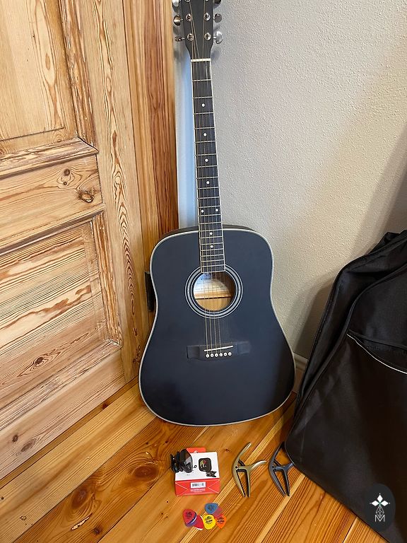 Ką tik atlikta pilna restauracija - instrumentas visiškai perdažytas, pakeistos naujos komponentės, stygos.