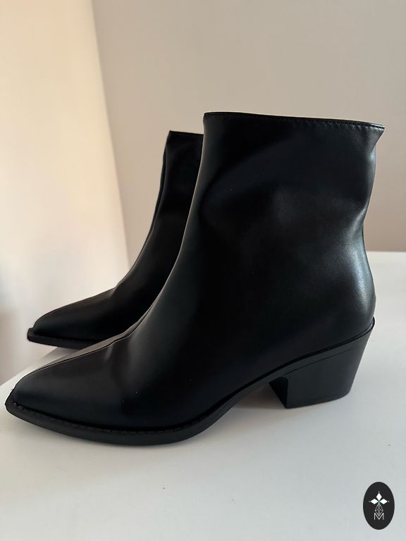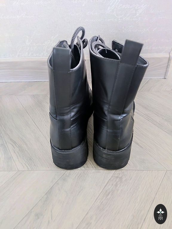 Vegan nahk, kantud paar korda, ei ole sisse kantud. Väike platvorm - 3.5-4.5 cm. Kruvitud kummitald, kõva ninaosa. Saadan