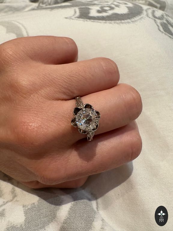 The large crystal is a relatively dark smoky quartz, which is why I describe it as almost morion. The edges are set with green garnets (tsavorites), which, from a lithotherapy perspective, reduce joint pain and normalize blood pressure.
