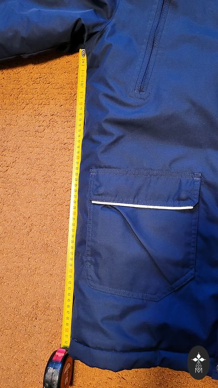 Müün väga laheda poiste jope, Inglismaalt pärit kevadise vestiga, kahepoolne. 1,5–2-aastastele. Üks pool on sinine, teine pool on mitmevärviline.