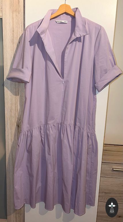 Easy to wear, as it is not tight-fitting. The dress falls freely below the bust. There are pockets on the sides. Bust size approximately 110 cm. Length 113 cm.