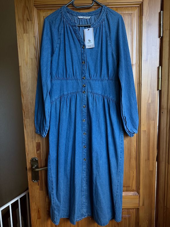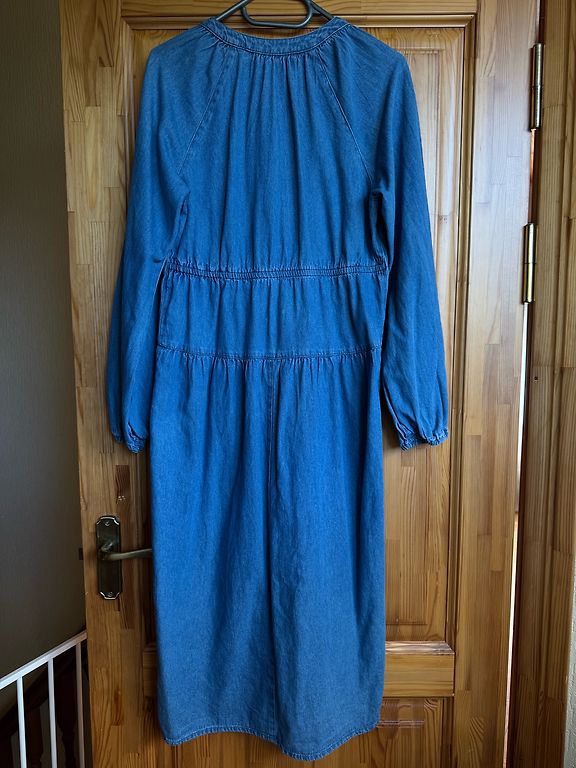 Suurus M, kuid tegelikult XXL, väga hea kangas, kleit on voogav, vööga. Pikkus 130, kaenlaaluste vahel 78, raglaanvarrukas kraest 62, kõige laiemas biitsepsi kohas ümbermõõt 48 cm.