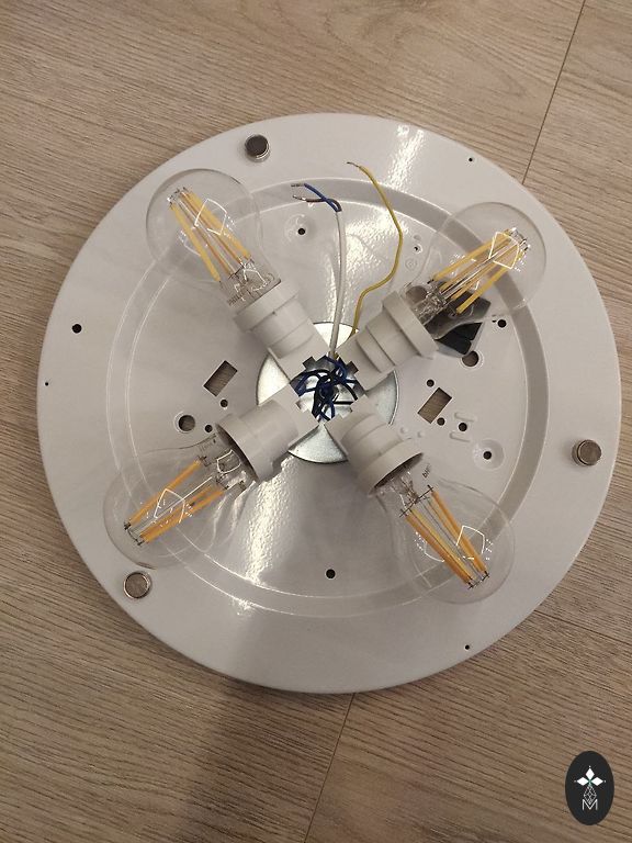 Laikinai naudojama lempa vaikų kambario luboms. Originaliai su 1 lempute, bet perdaryta, kad būtų galima įdėti 2.