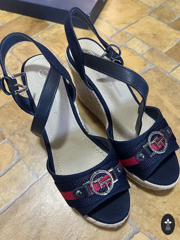 New, beautiful, tie-up at the ankle or higher. 25cm insole, platform height 10.5cm. Shipping included.