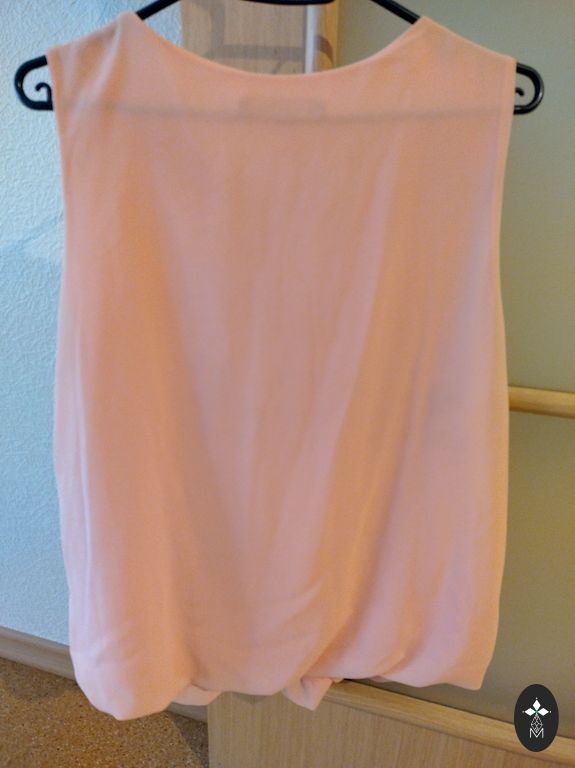 Šviesiai rožinis pagrindas su tamsiai mėlynais rombais. Užsegimas su viena sagtele nugaroje. 3/4 rankovės. 46 dydis.