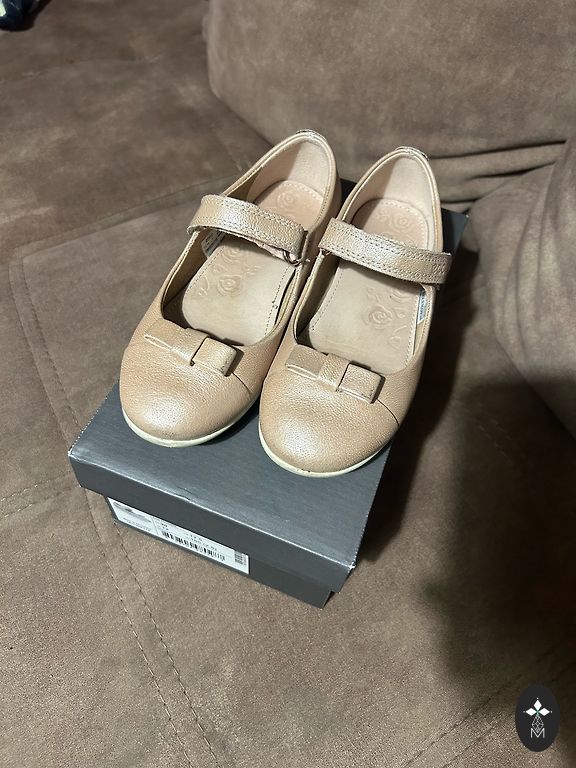 Baltos blizgios odiniai bateliai jaunajai princesei. Labai gražūs ir iškilmingi. Patogūs. Odinis pamušalas, kojos nesukaista. Lengvai užsegami su lipduku. Idealios būklės, dėvėti tik kelis kartus.