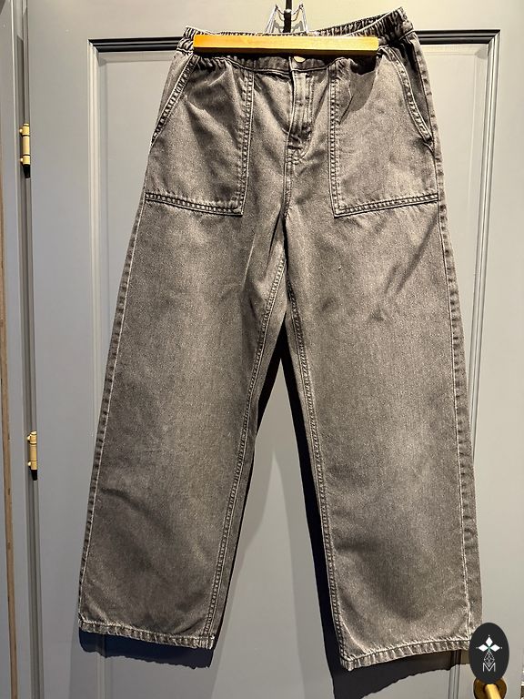 S izmērs, viduklī gumija, kura stiepjas, sānos šķēlums.