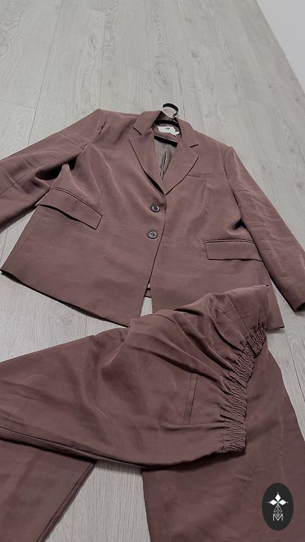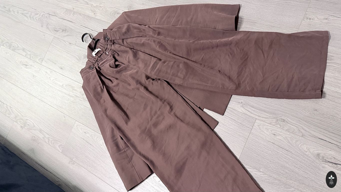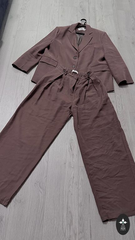 Blüze, nestaipígs audums: Krútïs un gurnos 104cm, garums 62cm. Svárki ar oderi: viduklis 80, gurnos 110cm, garums 61cm. Audums nestiepjâs