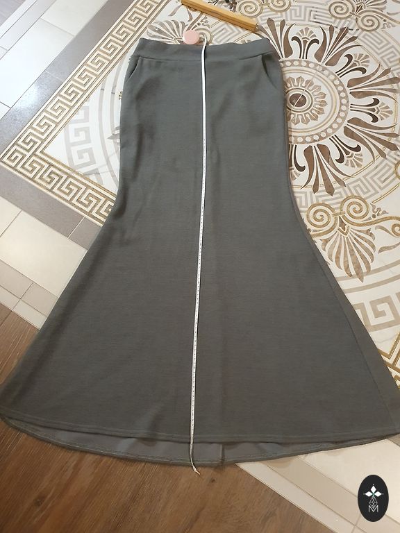 Блузка, неэластичная ткань: грудь и бедра 104 см, длина 62 см. Юбка с подкладкой: талия 80, бедра 110 см, длина 61 см. Ткань неэластичная.