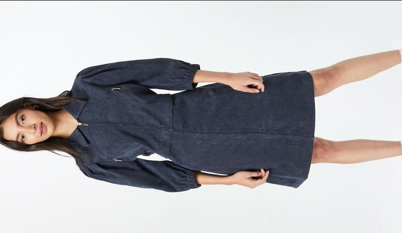 Pirkta tepat Andelē,tikai ne reizi nav uzvilkta. Iepriekšējā saimniece, rakstīja, ka šūta pie šuvējas. Halāttipa kleitiņa, sānos trīs podziņas aizpogājamas. Ir arī smalka jostiņa, ko var sasiet gan priekšpusē, gan aizmugurē.