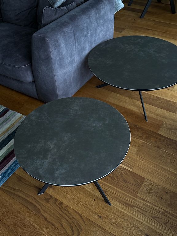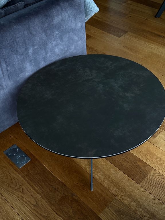 Ļoti skaists un kvalitatīvs apaļš galds ar metāla pamatni un stikla virsmu. Elegants dizains, kas iederēsies dažādos interjera stilos.