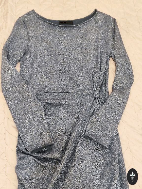 Skaisti piepildīta ceriņkrāsas Mohito Collection kleita(foto nevar nodot), elastīga materiāla, zem padusēm 44cm, gar. no pleca līdz vidum 43cm, kopējais garums 122cm, svārku daļā odere 70cm(līdz pēdējai mežģīnei)