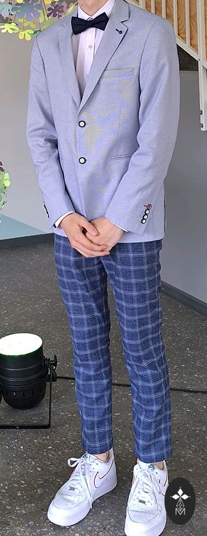 High-quality suit and trousers. Composition: Wool 43%, polyester 53%, elastane 4%.