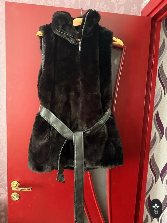 Must kunstkarusnahast vest. Sobib S-L suurusele. Sildil L, ostsin oma S-M suurusele. Ilma kinnitusteta.